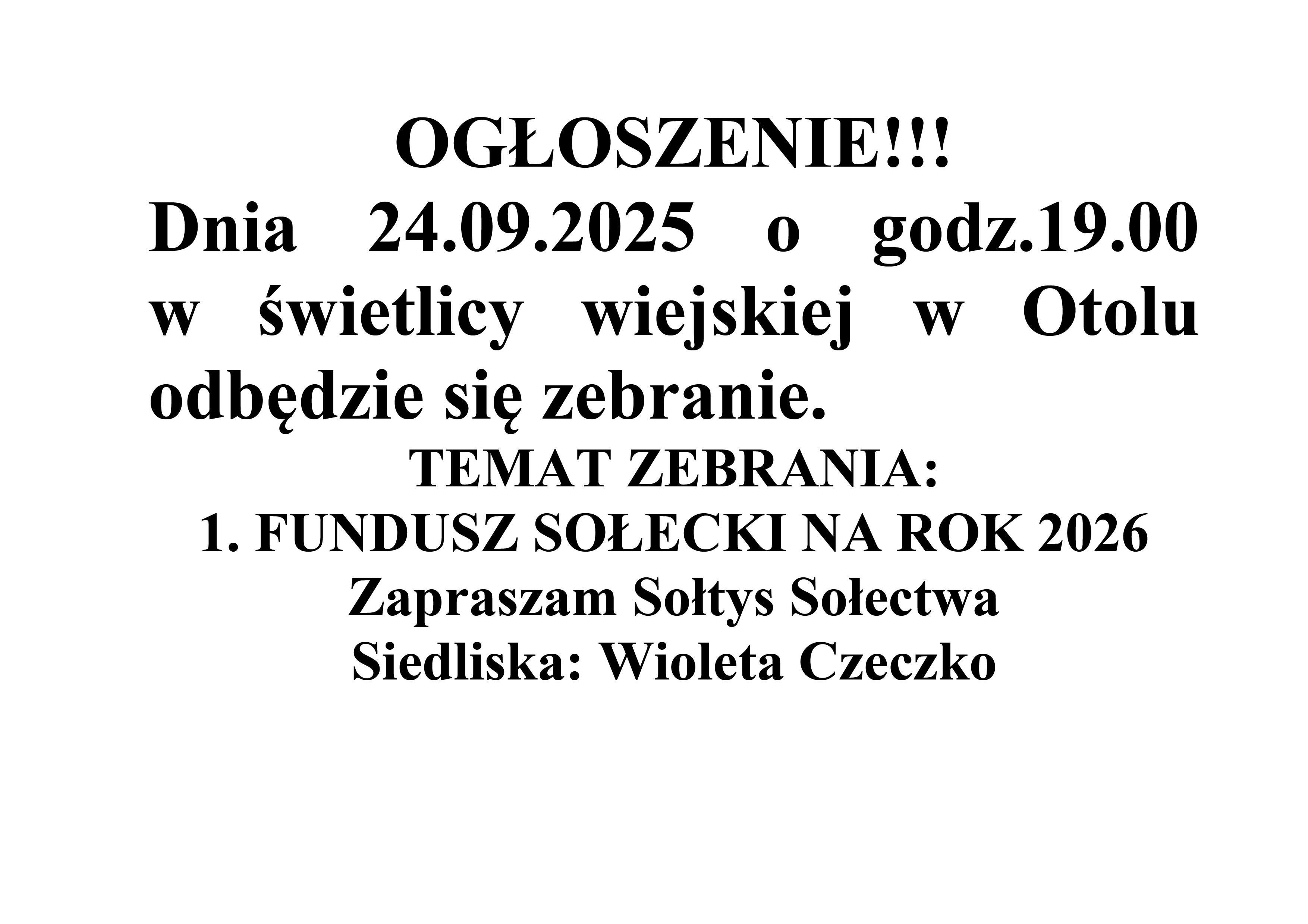 Ogłoszenie o zebraniu wiejskim sołectwa Siedliska
