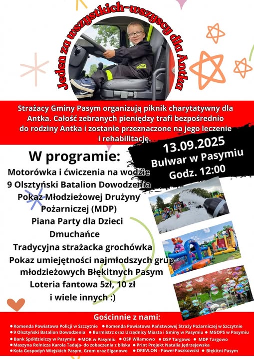 Antoś Zapadka w dalszym ciągu potrzebuje naszej pomocy![]() W sobotę 13 września, od godziny 12:00 na bulwarze w Pasymiu odbędzie się Piknik Charytatywny przygotowany przez OSP KSRG Pasym. Szczegóły na plakacie. Do zobaczenia |