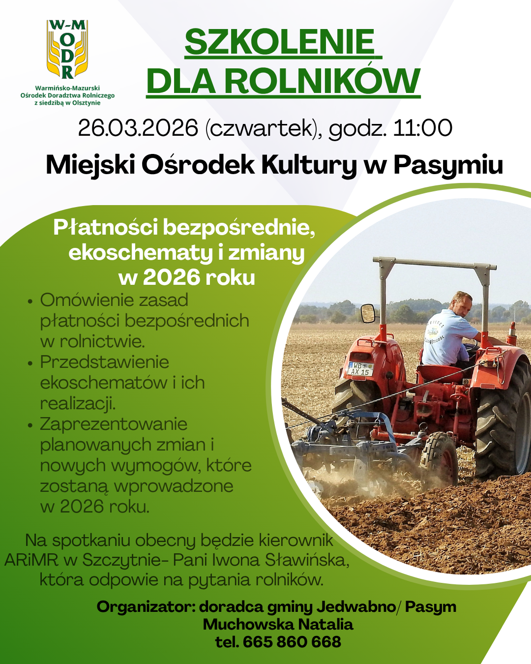 SZKOLENIE DLA ROLNIKÓW 24-03-2026Data publikacji, 24-03-2026, Krzysztof KobylińskiAutor, Krzysztof Kobyliński, 42Ilość wyświetleń, 42 Archiwum