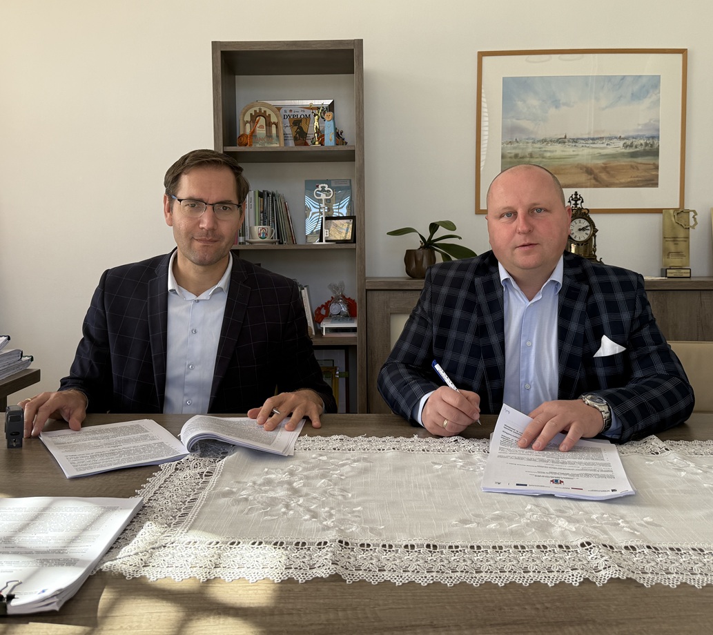 Dziś, tj. 6 marca 2026 roku Burmistrz Marcin Nowociński podpisał dwie umowy z właścicielem firmy Mariuszem Budnym.